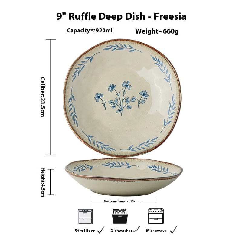 Color classification: 9-inch ruffled deep plates-freesia, 9-inch ruffled deep plates-ring leaf Blue