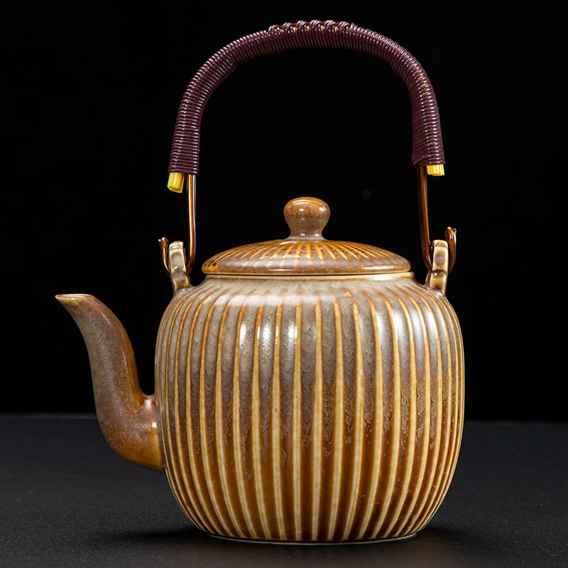 Color: celadon rib ring-handle teapot, cobalt blue rib ring-handle teapot, yellow rib ring-handle teapot